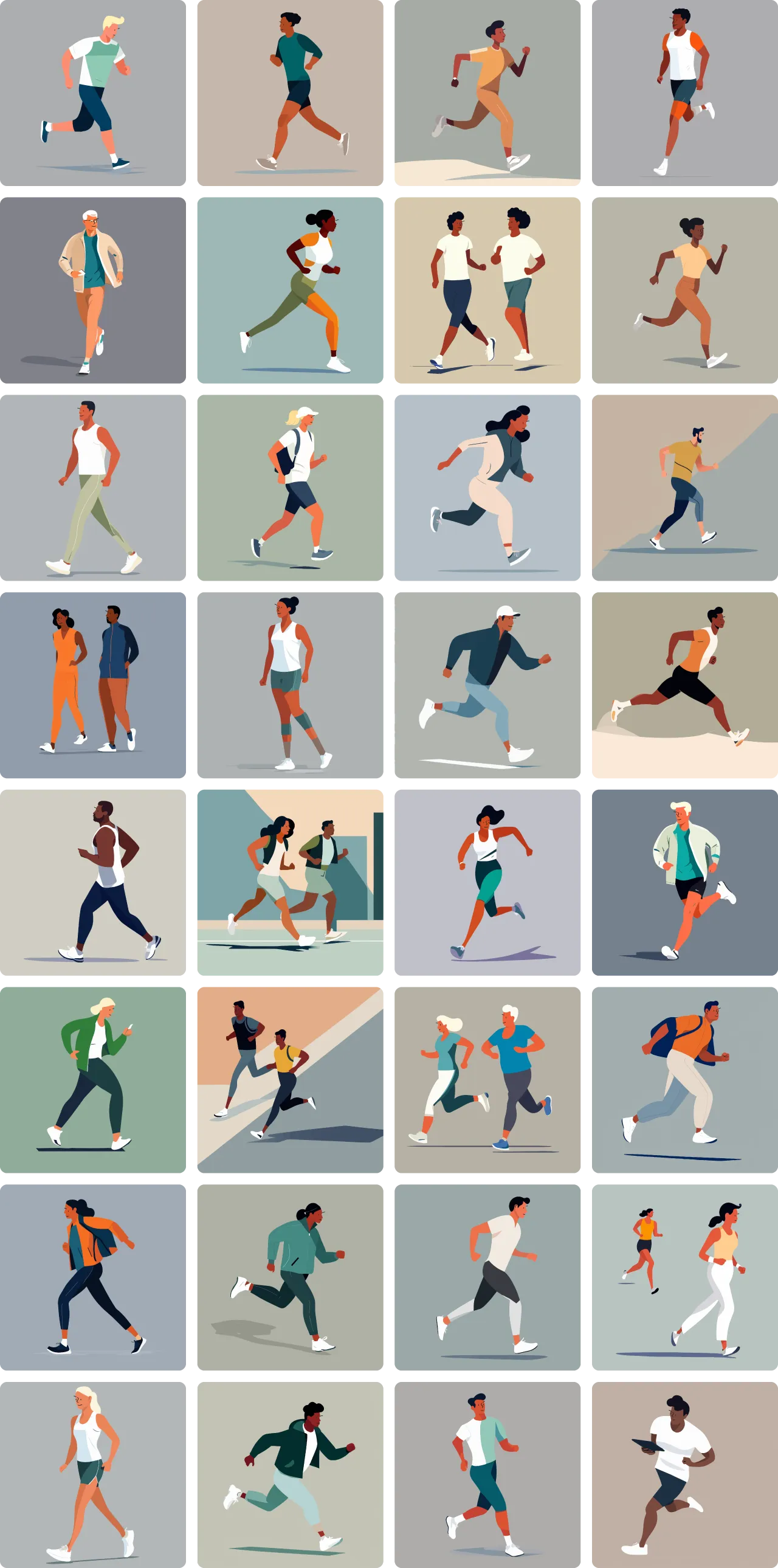 While the theme focuses on running, the visuals are intentionally designed to remain neutral, practical, and context-flexible. The illustrations avoid overly sporty or character-heavy expressions, making them easy to integrate across a wide range of layouts and use cases where motion, activity, or an active lifestyle needs to be conveyed subtly and consistently.