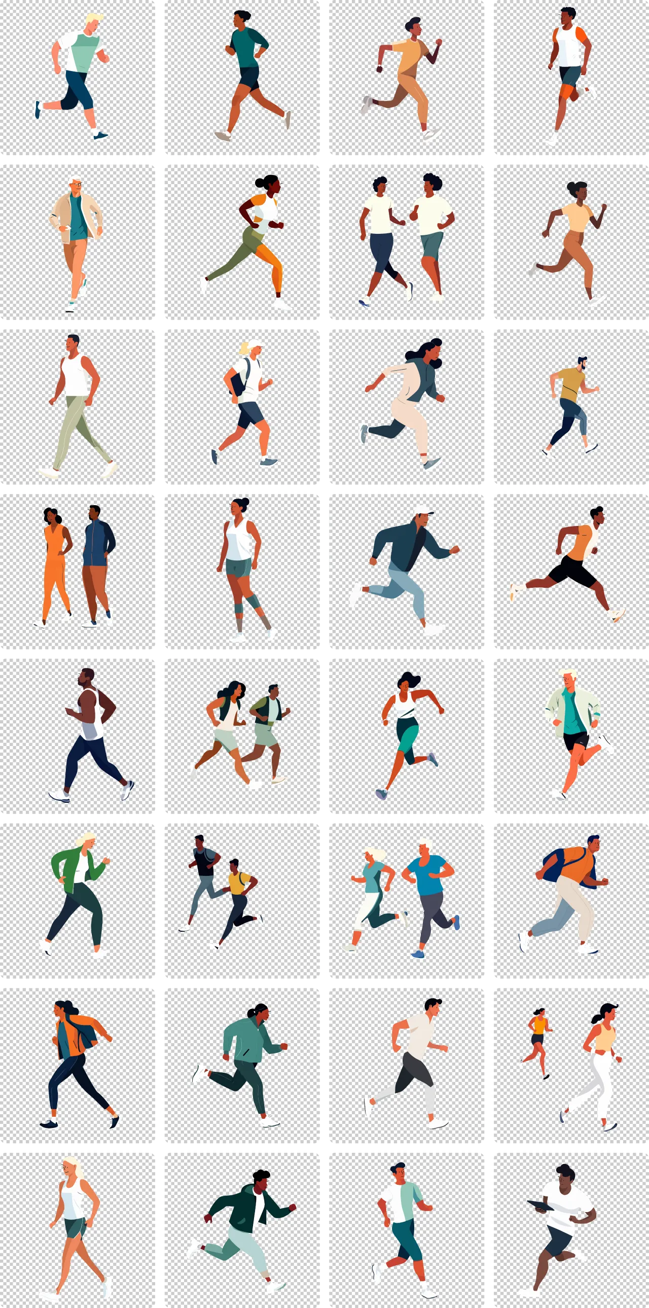 People Pict Pack â Run is a collection of 32 running-themed people images designed for clean, professional, digital-first use.